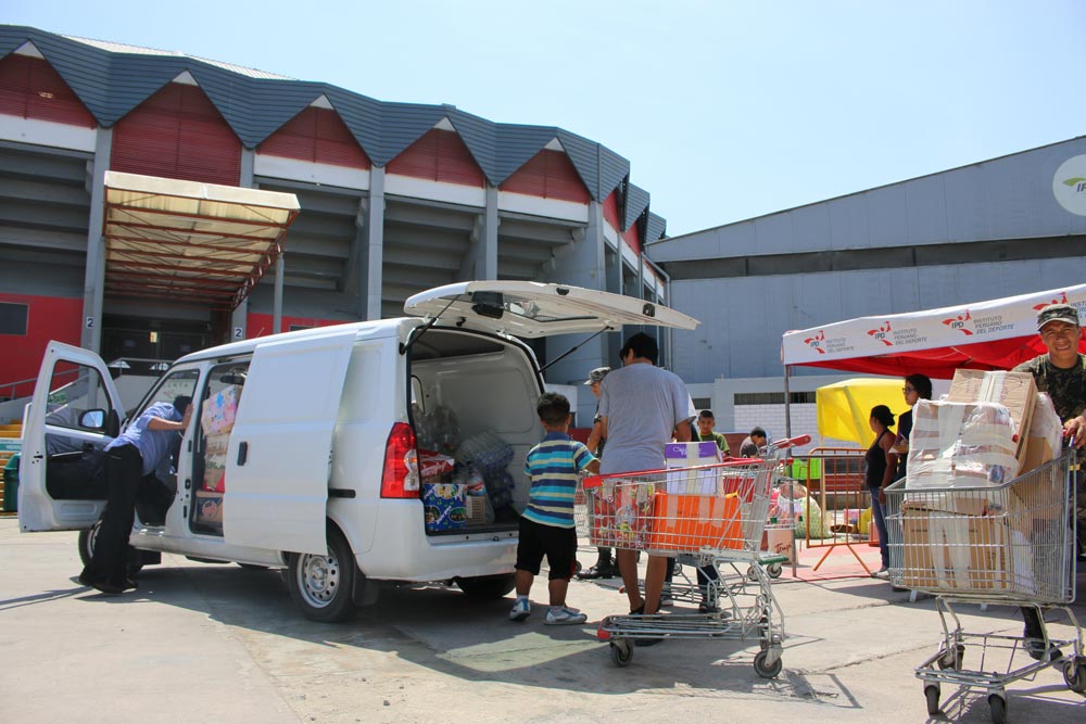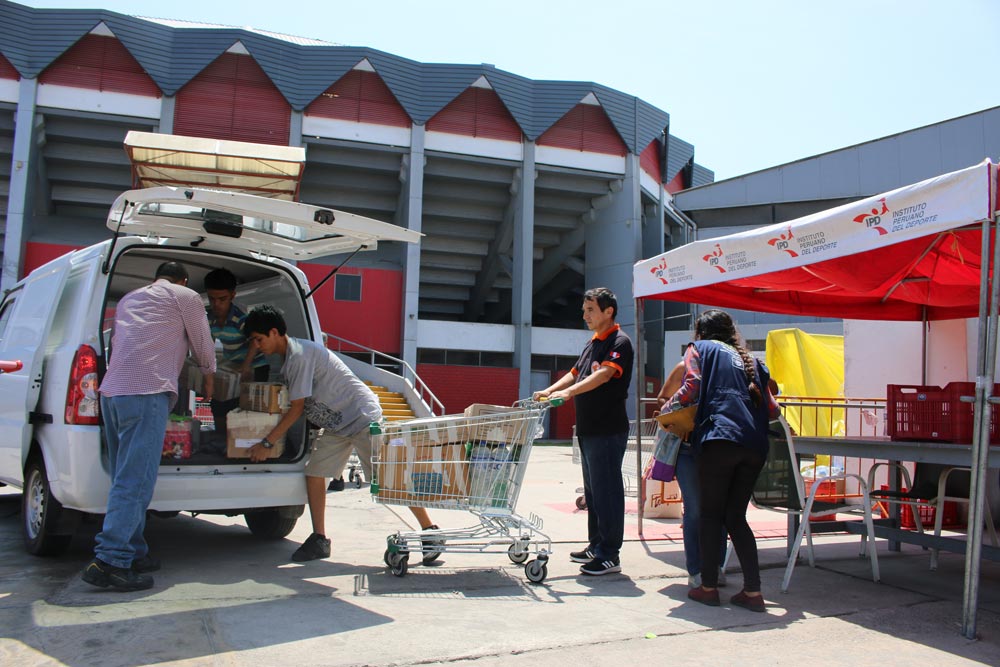 Recordemos, que el Coliseo Eduardo Dibós, es un centro de acopio autorizado por el COEN y Administrado por PRODUCE, cuenta con personal de Defensa Civil, colectivos de voluntarios y de las fuerzas armadas, quienes se encargan de gestionar las donaciones y dirigirlas hacia las zonas de emergencia.