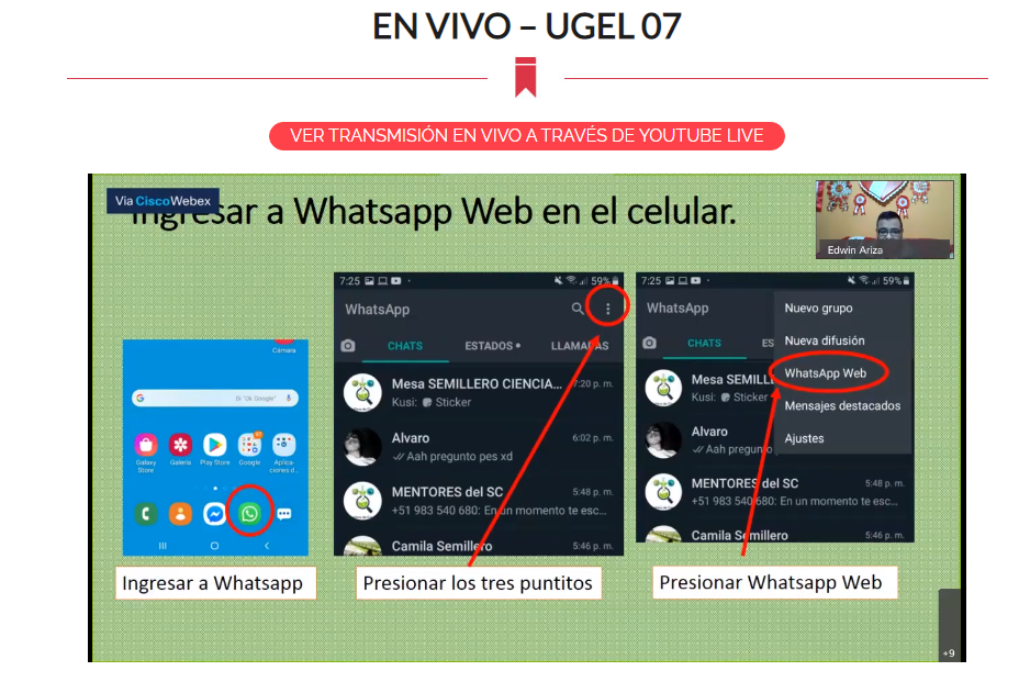 El “Uso del WhatsApp como herramienta pedagógica”, fue el primer curso virtual presentado por el Lic. Edwin Ariza, el pasado lunes 27 de julio. El especialista demostró las múltiples posibilidades que brinda esta App, para su aplicación en la enseñanza a los estudiantes.