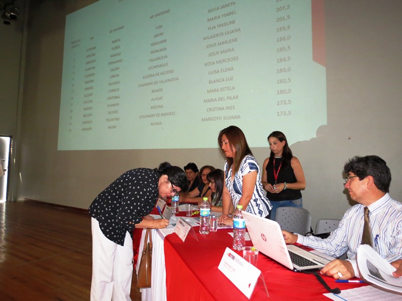 En la ceremonia , llevada a cabo en el Auditorio de la Institución Educativa Emblemática Juana Alarco de Dammert, las docentes adjudicadas recibieron su acta de adjudicación y se les realizará la entrega de sus Resoluciones Directorales en los próximos días.