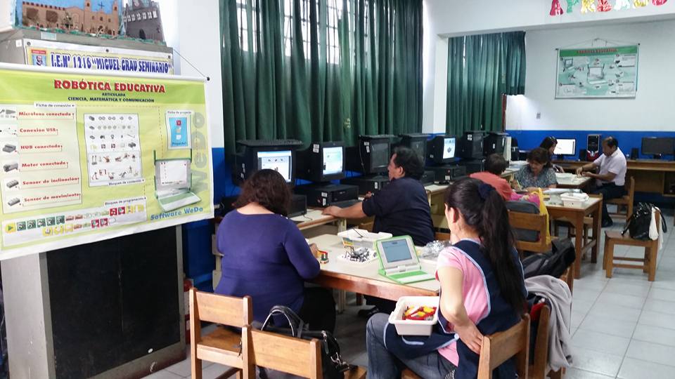 Maestros de las instituciones educativas de la UGEL 07 reciben capacitación en robótica educativa y tablets con la finalidad de fortalecer sus conocimientos en Tecnologías de la Información y Comunicación (TIC), para mejorar el uso de la tecnología y los aprendizajes en la formación educativa de nuestros estudiantes. Los talleres se vienen desarrollando de manera simultánea en los distritos de San Luis, Surquillo, Chorrillos, Miraflores, Surco y está beneficiando a más de un centenar de docentes.