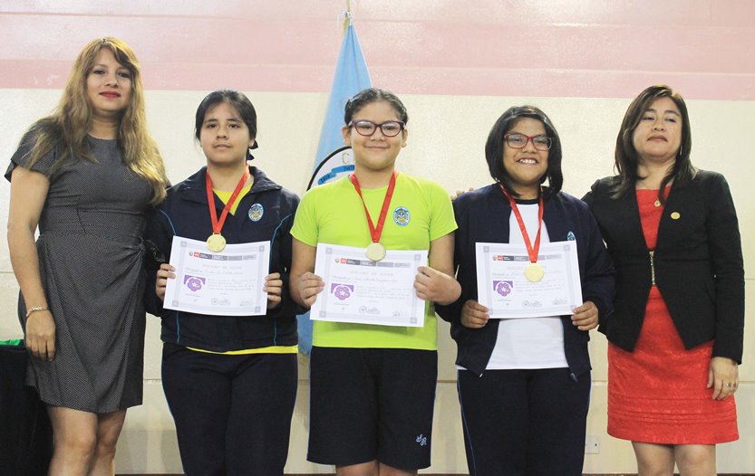 Asimismo, la hermana Benita Quispe Huayhua, directora de la institución educativa, recibió una medalla y diploma por la sobresaliente participación de su escuela en los concursos, reconocimiento que fue entregado por la directora de la UGEL 07 y por la Jefa del Área de Gestión de la Educación Básica Regular y Especial, Marilú Zarate Solano.