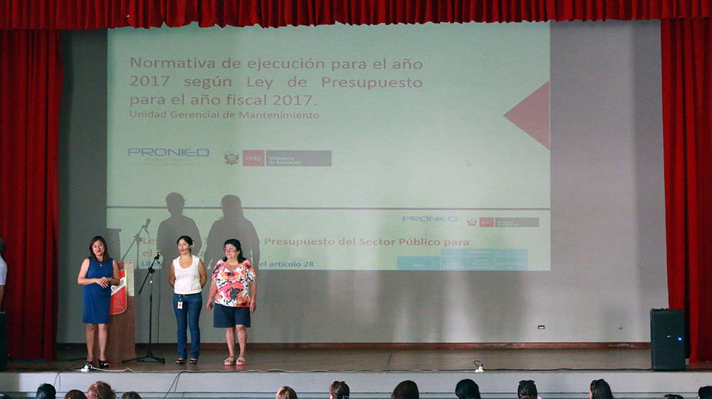 Esta capacitación tiene por objetivo informar a los Directores de las II.EE. Públicas, integrantes de los comités de mantenimiento y veedor, así como representantes de los Municipios, las acciones a desarrollar para la ejecución de los trabajos en los locales escolares y el cumplimiento de los requisitos establecidos en la Norma Técnica del Programa.