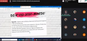 Posteriormente, el Área de Gestión de la Educación Básica Alternativa y Técnico Productiva (AGEBATP) informó sobre las orientaciones para el servicio de CETPRO. También, analizaron los alcances del Decreto Supremo N°012-2020.
