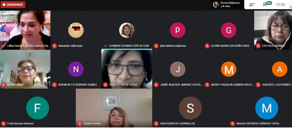 El encuentro inició con la presentación de la directora de la UGEL 07, Gloria María Saldaña Usco, que resaltó el trabajo dedicado y constante de los profesores y el acompañamiento que estos le dan a sus alumnos en el contexto de la emergencia sanitaria que atraviesa el país a causa del COVID–19.