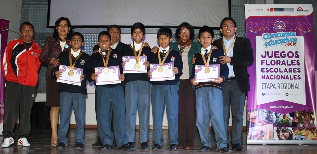La Dirección Regional de Educación de Lima Metropolitana (DRELM) premió a los estudiantes de las instituciones educativas que lograron los tres primeros puestos en las diferentes categorías de los “Juegos Florales Escolares Nacionales 2015”.