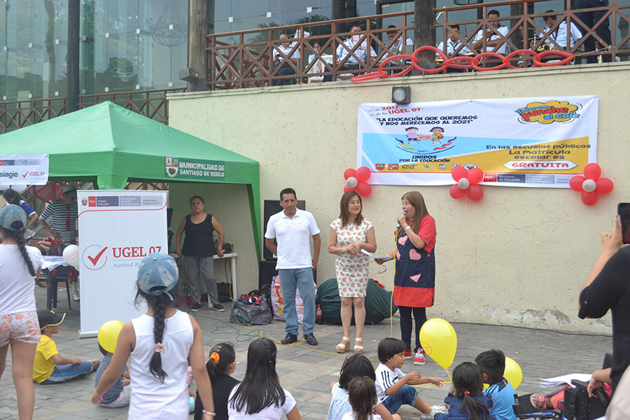 En cumplimiento con las políticas educativas priorizadas por el MINEDU y en el marco de las actividades del “Plan del Buen Inicio del Año Escolar 2017”, la cual se enmarca en las orientaciones de “La Educación que queremos y nos merecemos en Lima Metropolitana al 2021”, aprobada mediante la Resolución Regional Directoral Nº 2965-2016-DRELM, documento que establece el desarrollo e implementación de estrategias y acciones para brindar un mejor servicio educativo y que responda a las demandas educativas de la población estudiantil de Lima Metropolitana, que busca generar condiciones para lograr una “Escuela amable, limpia y segura que promueve aprendizajes”, impulsado desde diferentes instancias descentralizadas y en articulación con otras instituciones aliadas diversas, la Unidad de Gestión Educativa Local N° 07 en coordinación con las Gerencias de Educación, Cultura y Deporte de las Municipalidades de Santiago de Surco, Barranco y San Luis, viene organizando la actividad denominada “Feria Informativa”, que tiene como objetivo principal dar a conocer a los Padres de Familia los servicios que brindan el Ministerio de Educación a través de plataformas de atención con instituciones aliadas.