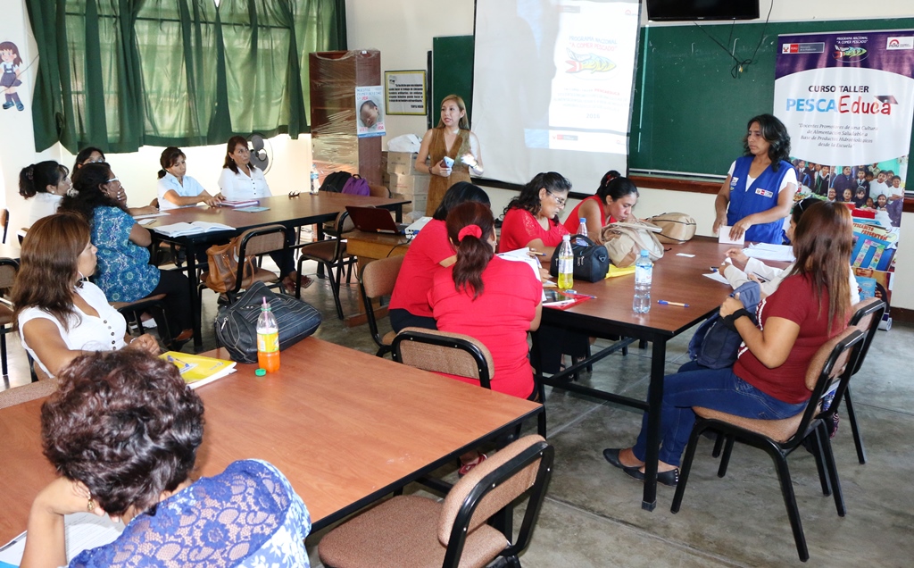 La Unidad de Gestión Educativa Local N° 07 (UGEL 07) en coordinación con los responsables del Programa Nacional “A Comer Pescado” del Ministerio de la Producción, organizaron un curso taller a las docentes del nivel inicial para que puedan implementar y ejecutar este importante programa social y fomentar el consumo de productos hidrobiológicos en los padres de familia y estudiantes de sus instituciones educativas.