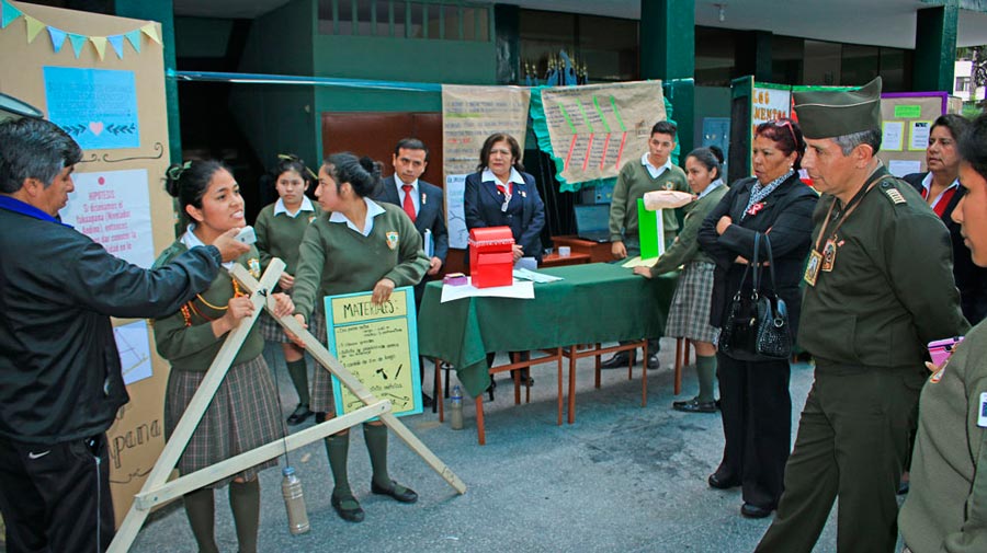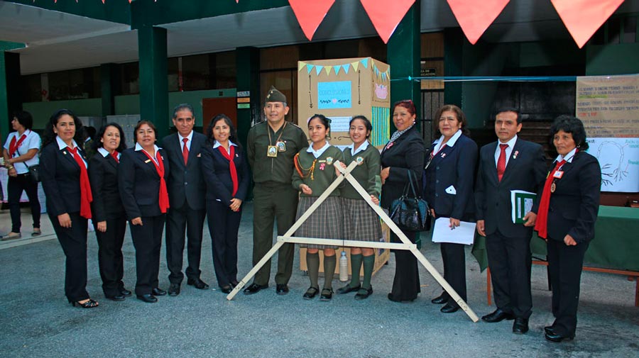 La Jefa del Área de Gestión de la Educación Básica Regular y Especial de la UGEL N° 07 Marilú Zárate Solano visitó cada una de las presentaciones, junto con la Subdirectora de Formación General Teresa Sifuentes Yataco y el Director, el Coronel Cesar Augusto Contreras Torres.