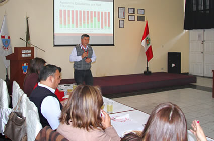 Dentro de la agenda desarrollada, el especialista de ASGESE Frich Torres Pozo, expuso los alcances y resultados del monitoreo realizado a través del Aplicativo “Vamos Juntos a la Escuela” el cual mide el nivel de asistencia y puntualidad de los alumnos, directivos y docentes de las II.EE. de la jurisdicción, resultados que fueron analizados por los Coordinadores de Redes, quienes trabajan estrategias para mejorar los resultados.