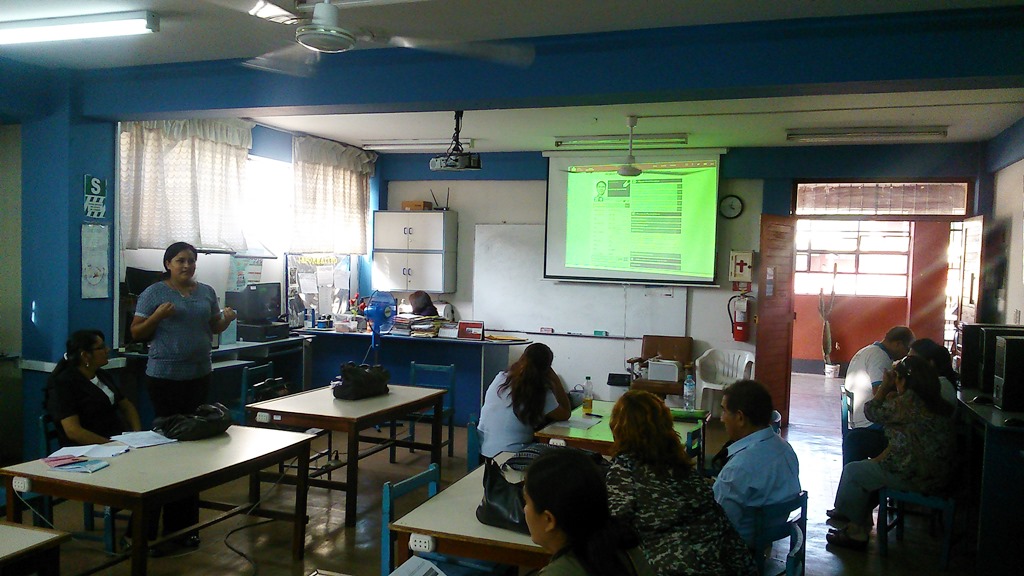 El taller estuvo a cargo de Elvira Gamero Eguiluz, Analista de Sistemas en materia electoral para el Ministerio de Educación, del Jurado Nacional de Elecciones, quien explicó que a través de la implementación de una plataforma virtual de registro de información electoral escolar, se está estableciendo un mecanismo de monitoreo del programa de municipios escolares.