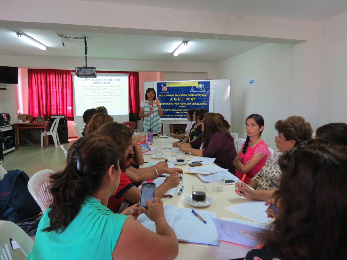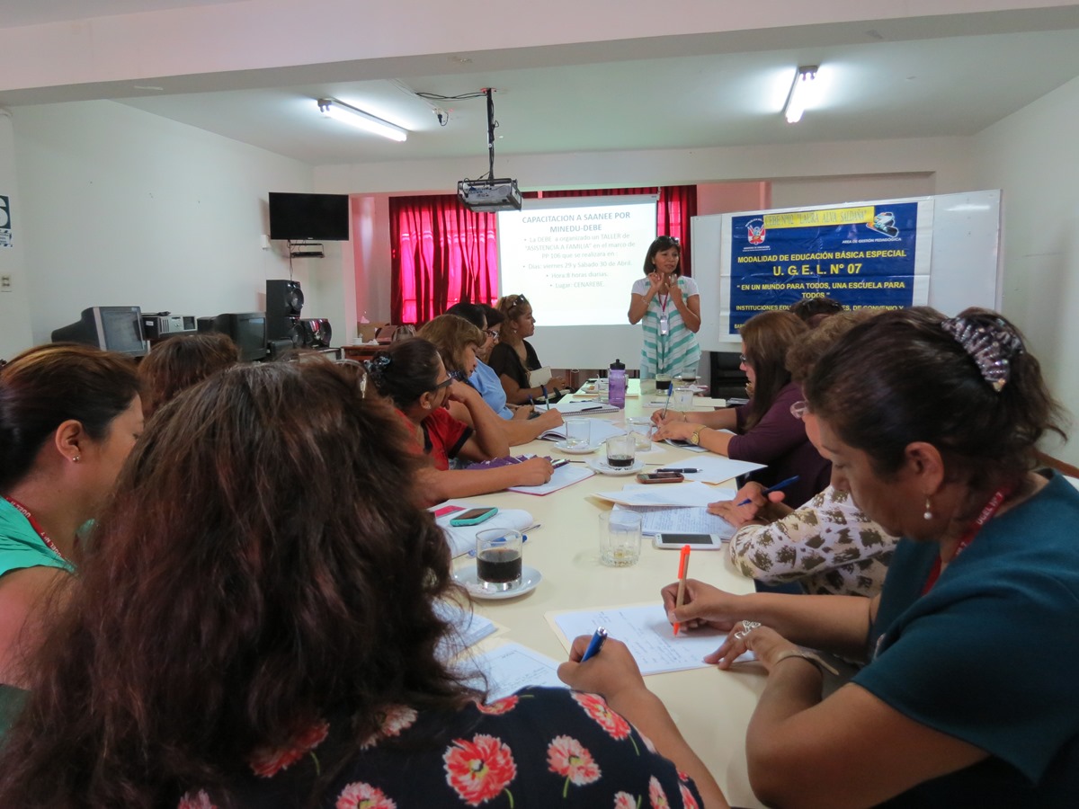 La primera reunión del año del equipo SAANEE se realizó en las instalaciones del centro de educación especial (CEBE) “Laura Alva Saldaña” del distrito de Barranco, donde expusieron los planes de trabajo que se utilizarán durante el 2016, tocando puntos específicos como la programación presupuestal, monitorio de los CEBE y el acondicionamiento debido de espacios en II.EE. inclusivas.
