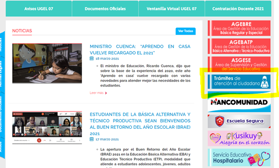 El nuevo SISTEMA DE ATENCIONES A INSTITUCIONES EDUCATIVAS se encuentra dentro de nuestra web, puedes encontrarla revisando la columna derecha en la casilla con el nombre de TRÁMITES DE ATENCIÓN AL CIUDADANO, haciendo clic en el cuadro se abrirá una nueva pestaña en el buscador donde encontrarás la opción de este nuevo sistema.