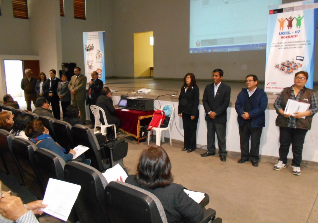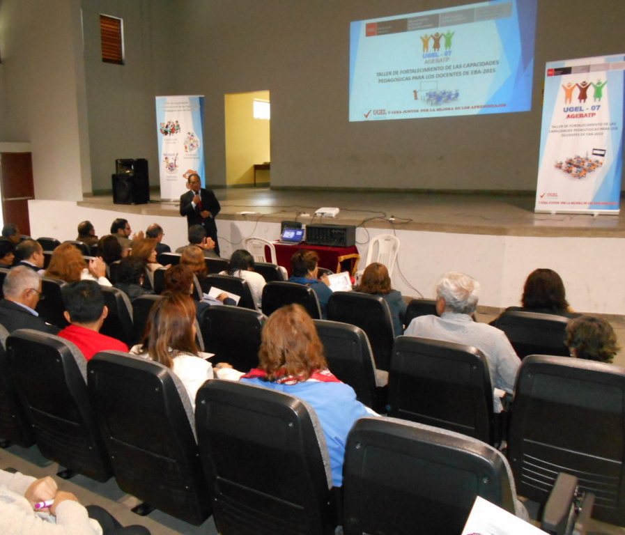 La Unidad de Gestión Educativa Local N° 07 (UGEL) a través del Área de Gestión de la Educación Básica Alternativa y Técnico Productiva (AGEBATP) organizó el taller de capacitación “Fortalecimiento de Capacidades Pedagógicas”, donde capacitó a los docentes de la Modalidad de Educación Básica Alternativa (EBA) de las Instituciones Educativas Públicas y de Convenio de esta unidad educativa en el marco del Plan de Trabajo 2015.