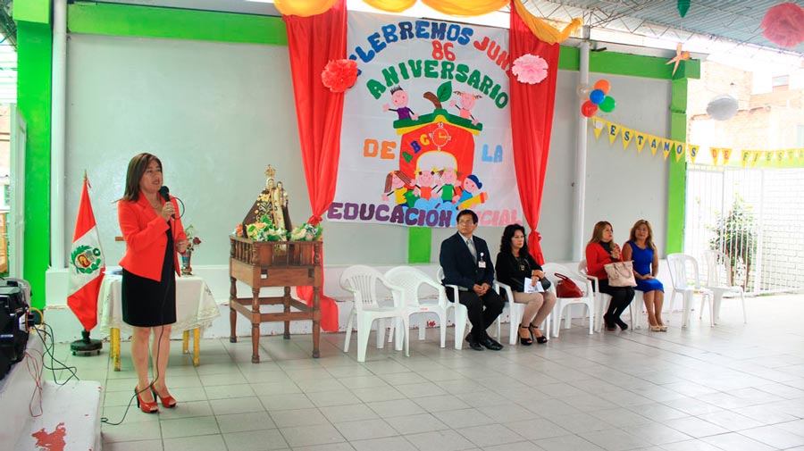 La II.EE. Inicial N° 86 Nuestra Señora del Carmen, del Distrito de Santiago de Surco fue el escenario de dicho acto, y en una sencilla y emotiva ceremonia participaron la plana docente, administrativa y padres de familia de la II.EE. ya mencionada.