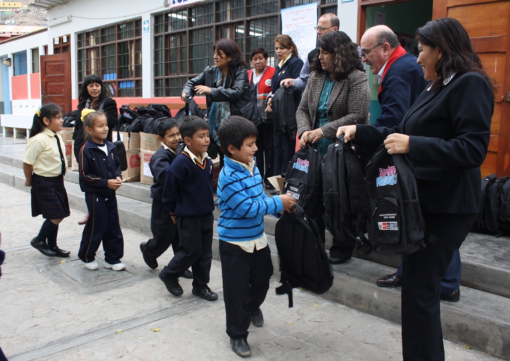 En la I.E. Virgen del Morro se entregó 206 mochilas escolares, mientras que en la I.E. Reyes Católicos se otorgaron 266.