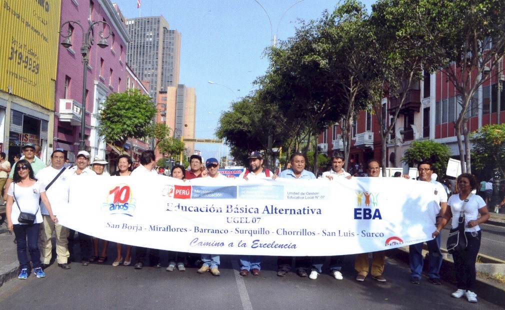 Delegaciones de los Centros de Educación Básica Alternativa – CEBA públicos y privados participaron en la celebración por el X Aniversario de la Educación Básica Alternativa – EBA, modalidad escolar que permite a jóvenes y adultos culminar sus estudios de educación primaria y secundaria.