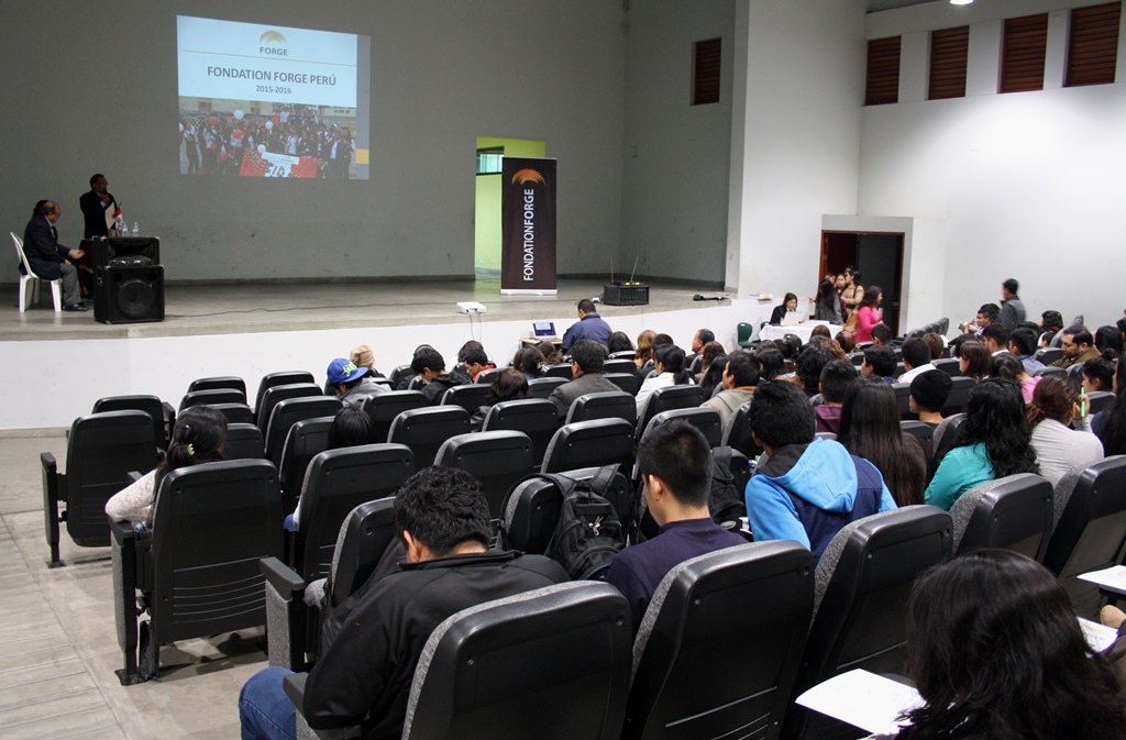 Con la participación numerosa de estudiantes de nivel secundaria de la Unidad de Gestión Local N° 07 (UGEL 07), se desarrolló la charla informativa -que se organizó conjuntamente con la Fundación Forge- cuya misión es formar a los jóvenes para insertarlos al sistema laboral.