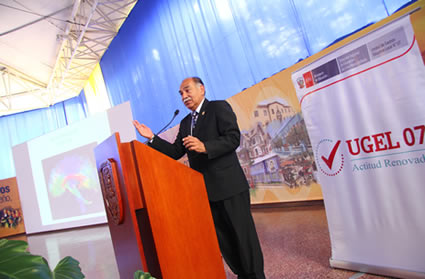 Por su parte, la Directora de UGEL 07 Gloria María Saldaña Usco, solicitó el apoyo de autoridades y especialistas para mejorar el sector, invocó también ser parte de un escenario inclusivo, donde el trabajo y las expectativas tengan un mejor resultado desde el trabajo que cada uno – como profesional, directivo- especialista- realiza, logrando un mejor aprendizaje del estudiante, junto a los padres, que son el principal soporte de los estudiantes.
