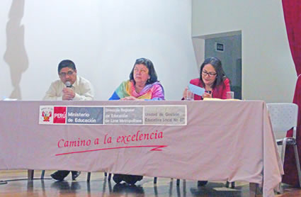 El taller fue dictado por especialistas de Área de Supervisión y Gestión del Servicio – ASGESE de la UGEL 07, donde se expusieron las características que deberían poseer cada infraestructura de las sedes, tanto internas, externas, el uso de materiales de construcción permitidos, así como la normatividad vigente. Así mismo, se profundizó en el manejo y aplicación de los documentos pedagógicos con los que debe contar toda Institución Educativa, tales como son: El Proyecto Educativo Institucional (PEI), el Proyecto Curricular Institucional (PCI), el Reglamento Interno (RI) y el Plan Anual de Trabajo (PAT); cada uno de ellos cuenta con un instructivo de manejo el cual fue facilitado para una mejor gestión, orientada al cumplimiento de los Cinco Compromisos de Gestión Escolar.