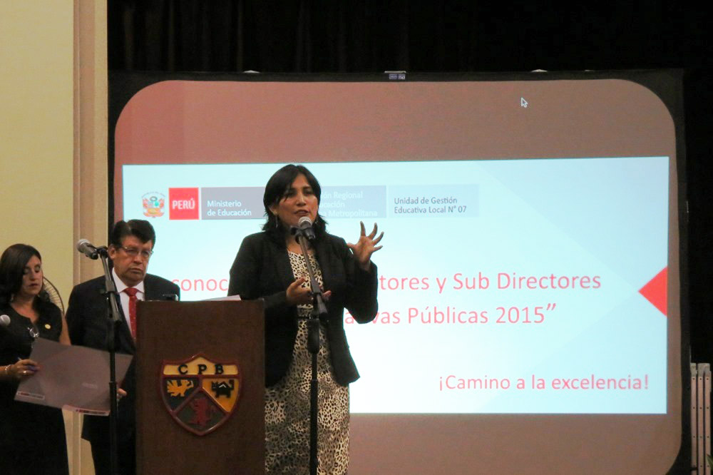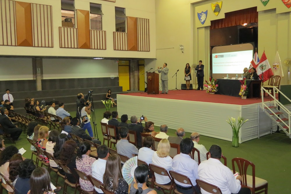 La ceremonia se realizó en las instalaciones del colegio Peruano – Británico en Surco, y estuvo encabezada por el director de la Ugel 07, Luis Quintanilla Gutiérrez y contó con la presencia de la Directora Regional de Educación de Lima Metropolitana (DRELM) Flor Pablo Medina, quien felicitó a los nuevos directivos y los exhortó a comprometerse para lograr una educación pública de calidad en Lima Metropolitana y a desarrollar los planes de gestión junto a los escolares, docentes y la comunidad educativa en general.