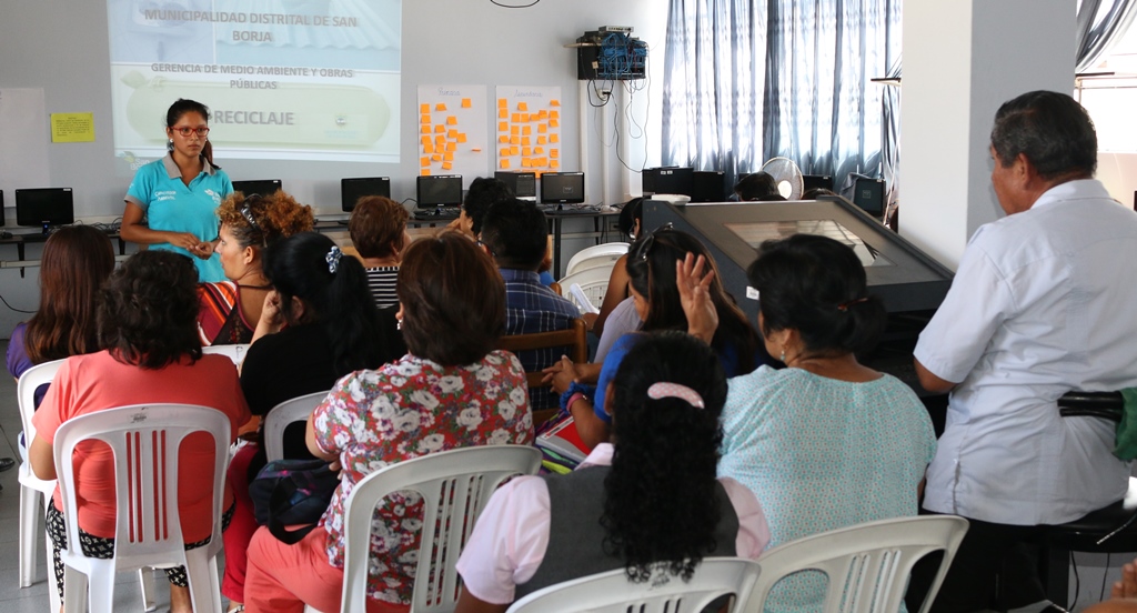 Esta capacitación fue dictada por el responsable de Gestión Ambiental de la UGEL 07, John Huiza Machco y por funcionarias en temas ambientales del municipio sanborjino.