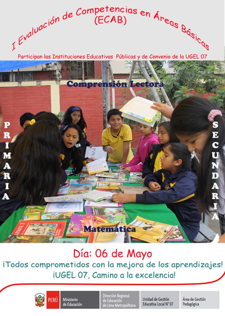A fin establecer una línea de base y orientar las estrategias de mejora de los aprendizajes de los estudiantes de primaria y secundaria, la Unidad de Gestión Educativa Local N° 07 realizará la Primera Evaluación de Competencias en Áreas Básicas (ECAB).