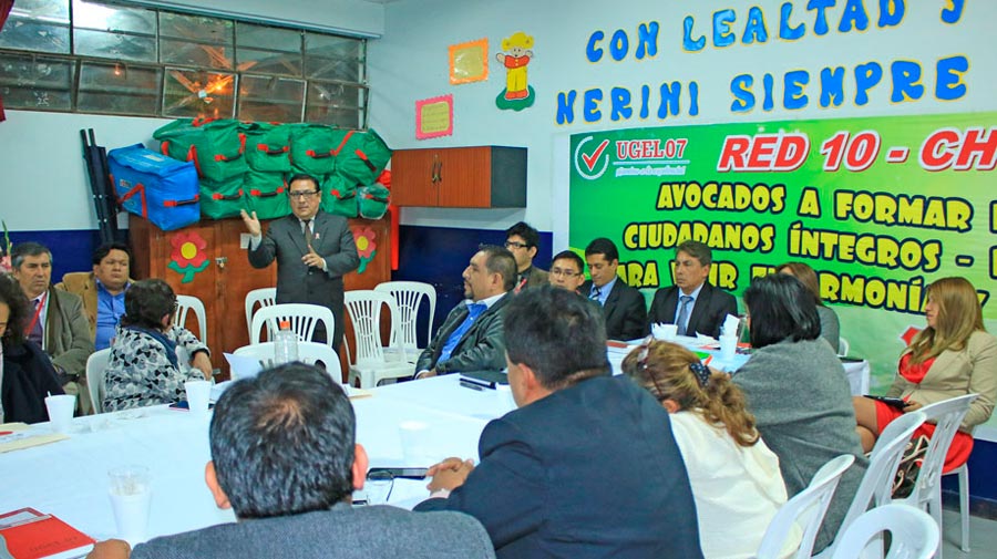 La Directora de la UGEL N° 07 Gloria María Saldaña Usco, manifestó que los Directivos y jefes de área, así como los especialistas participarán de las reuniones de las catorce Redes Educativas a partir de la segunda semana del mes de agosto del presente año con el objetivo de acompañar, asesorar y fortalecer la gestión en su tarea administrativa y pedagógica, para lo cual, los coordinadores de Red enviarán la agenda de trabajo a discutir. Del mismo modo se solicitó la colaboración para generar una cruzada de valores en las II.EE. de la UGEL N° 07.
