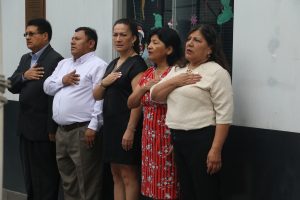 Nuestra directora de la UGEL N° 07, Dra. Ana Enciso Trujillo, participó en el primer izamiento de la Bandera Nacional y la entonación del Himno Nacional correspondiente al año 2026, reafirmando su compromiso con la patria y la educación peruana.